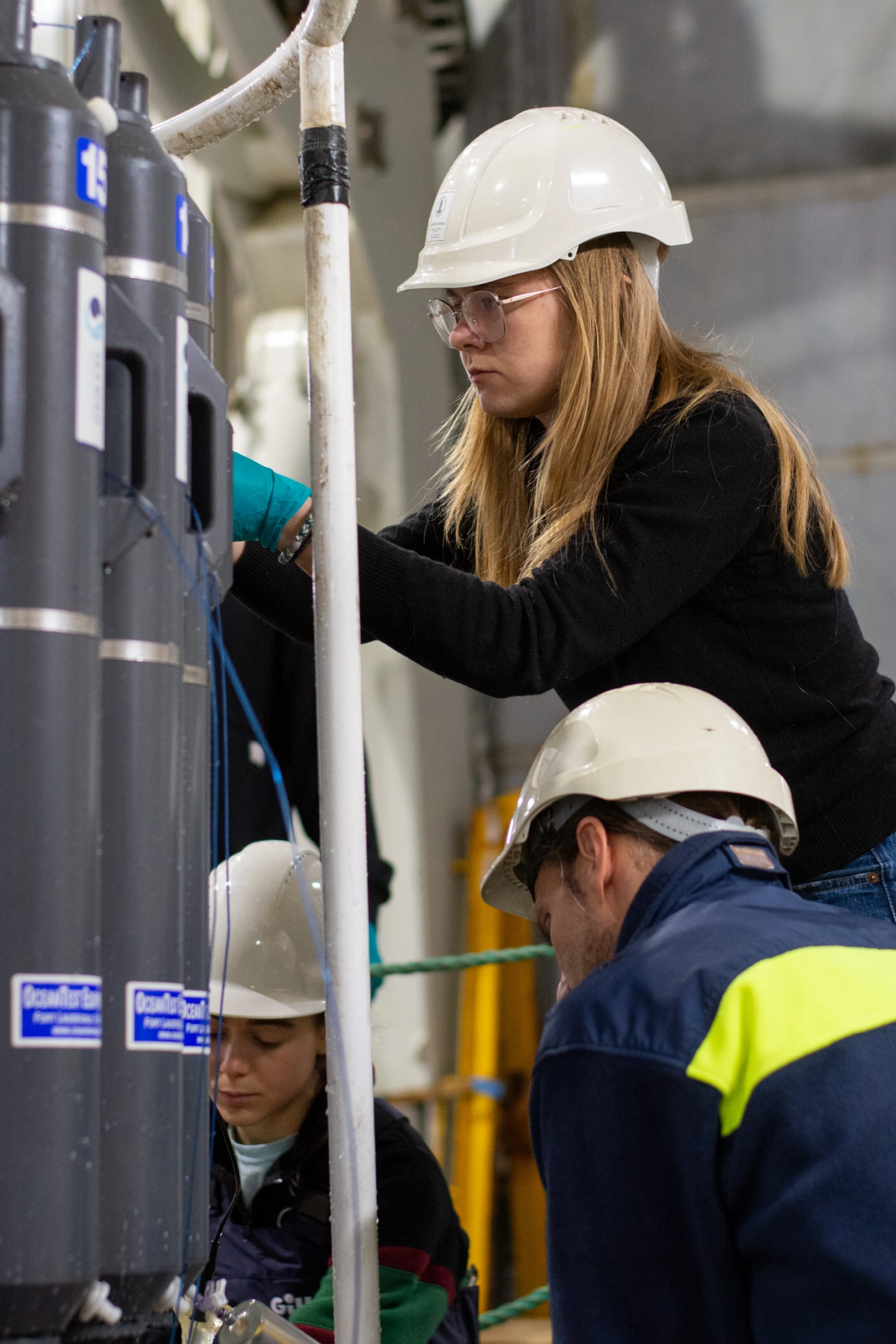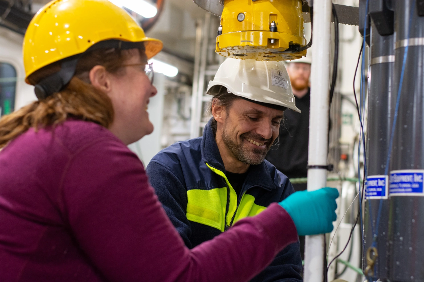 Kristin Jackson-Misje and Emil Jeansson, from UiB, NORCE and the Bjerknes Centre, have been to many cruises and are experience water samplers. Photo. Ellen Viste