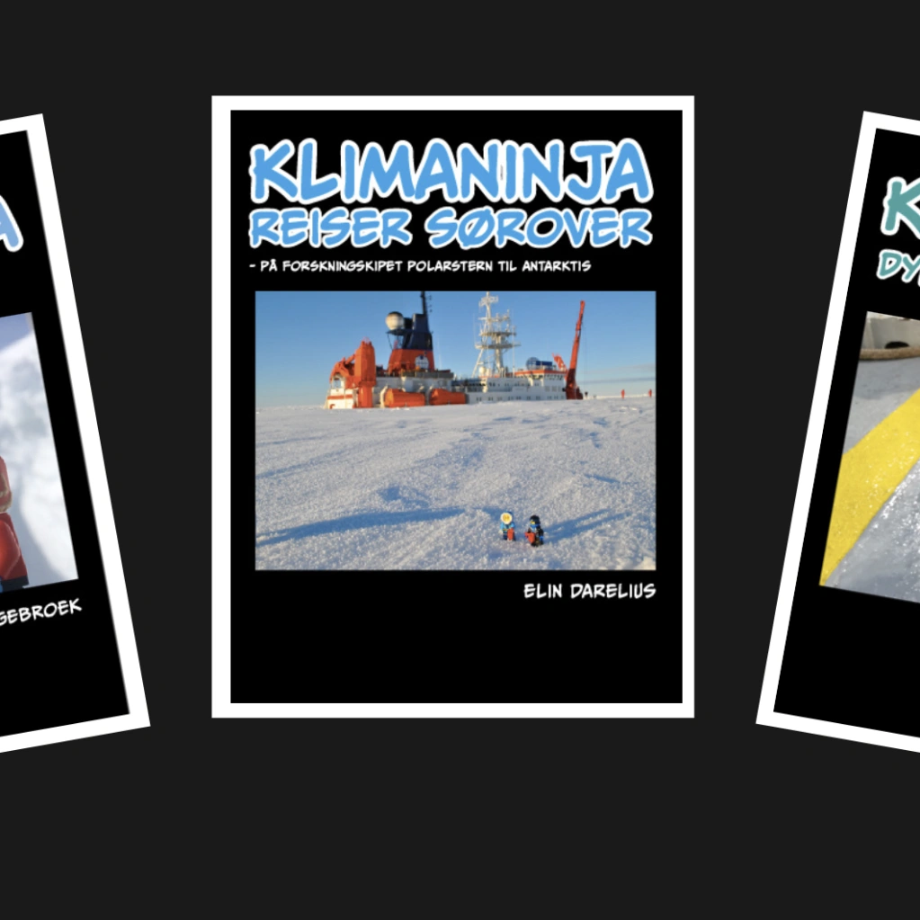 Den vesle legofiguren Klimaninja har vært på feltarbeid på Grønlandsisen, på reise til Antarktis, og har dykket dypt ned i fjorden.